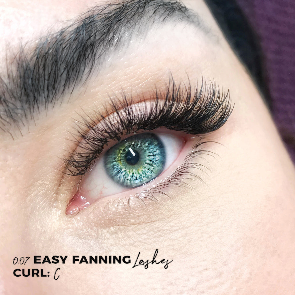 Las extensiones de pestañas Easy Fanning son tu mejor opción para crear looks de pestañas súper voluminosas como las de Kim K. Tienen un aspecto muy voluminoso y se desprenden fácilmente de la tira con la cantidad justa de pegamento. Tus clientas quedarán impresionadas. Son resistentes al calor y al agua y cada bandeja se somete a procedimientos de control de calidad que garantizan la consistencia del color, la forma y la densidad de la tira. Las pestañas tienen tres longitudes diferentes en una tira .